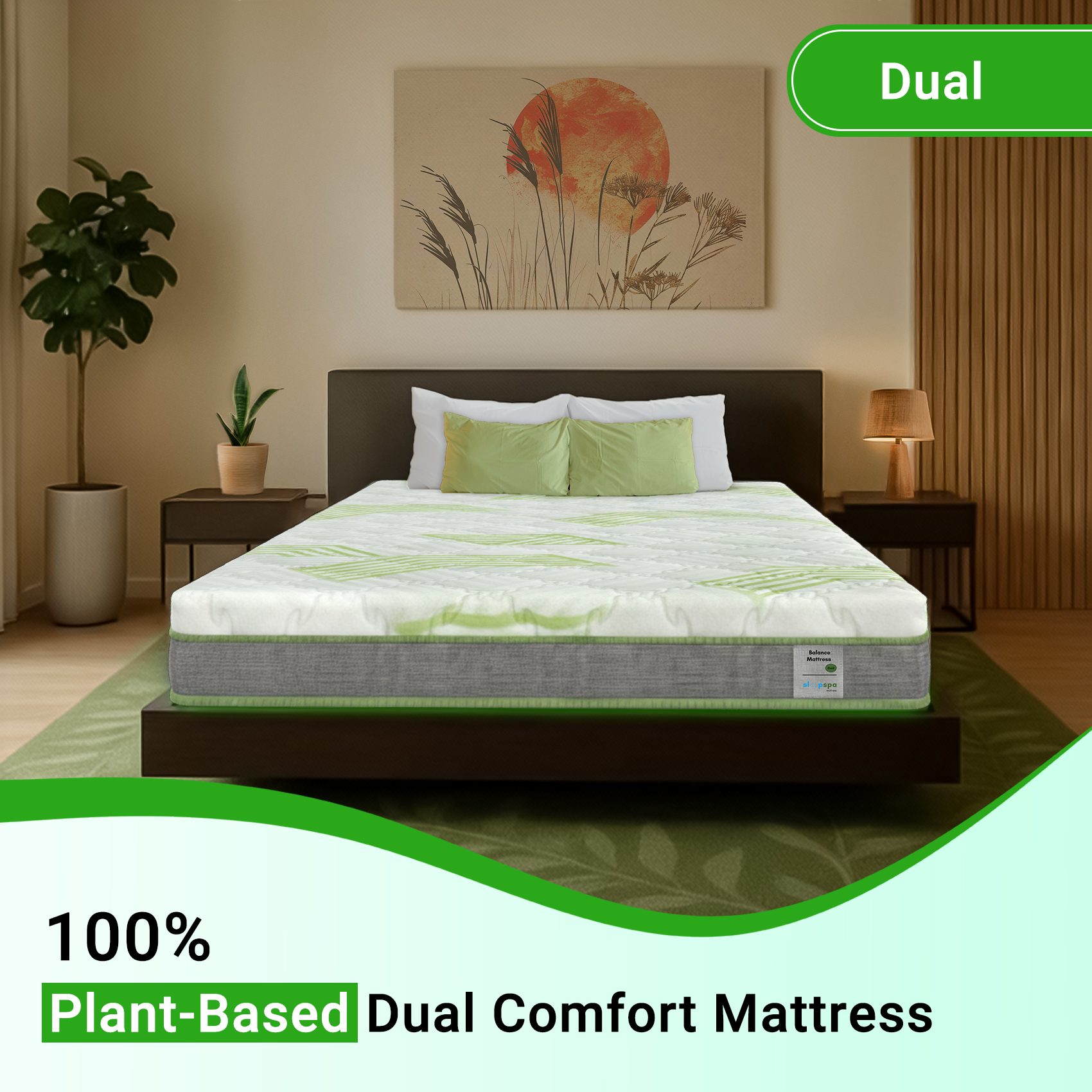 The Balance Mattress offers India’s first dual-comfort experience, combining plant-based cellulose foam with pincore Talalay latex—soft on one side and medium-firm on the other. Pressure-relieving, orthopedic, and chemical-free, it ensures dual comfort innovation and healthy, affordable sleep for those who want luxury that’s natural and sustainable.