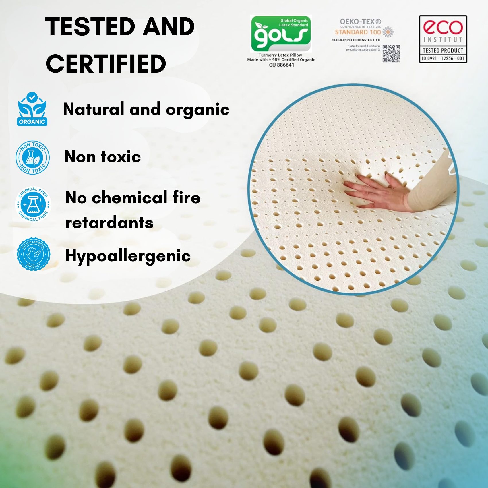 Certified Organic & Natural Materials   |   Orthopedic Support for Restful Sleep   |   Free from Chemicals & Synthetic Foams   |   Gentle on Skin, Naturally Hypoallergenic   |   Eco-Friendly & Sustainably Made   |   36+ Years of Trusted Craftsmanship   |